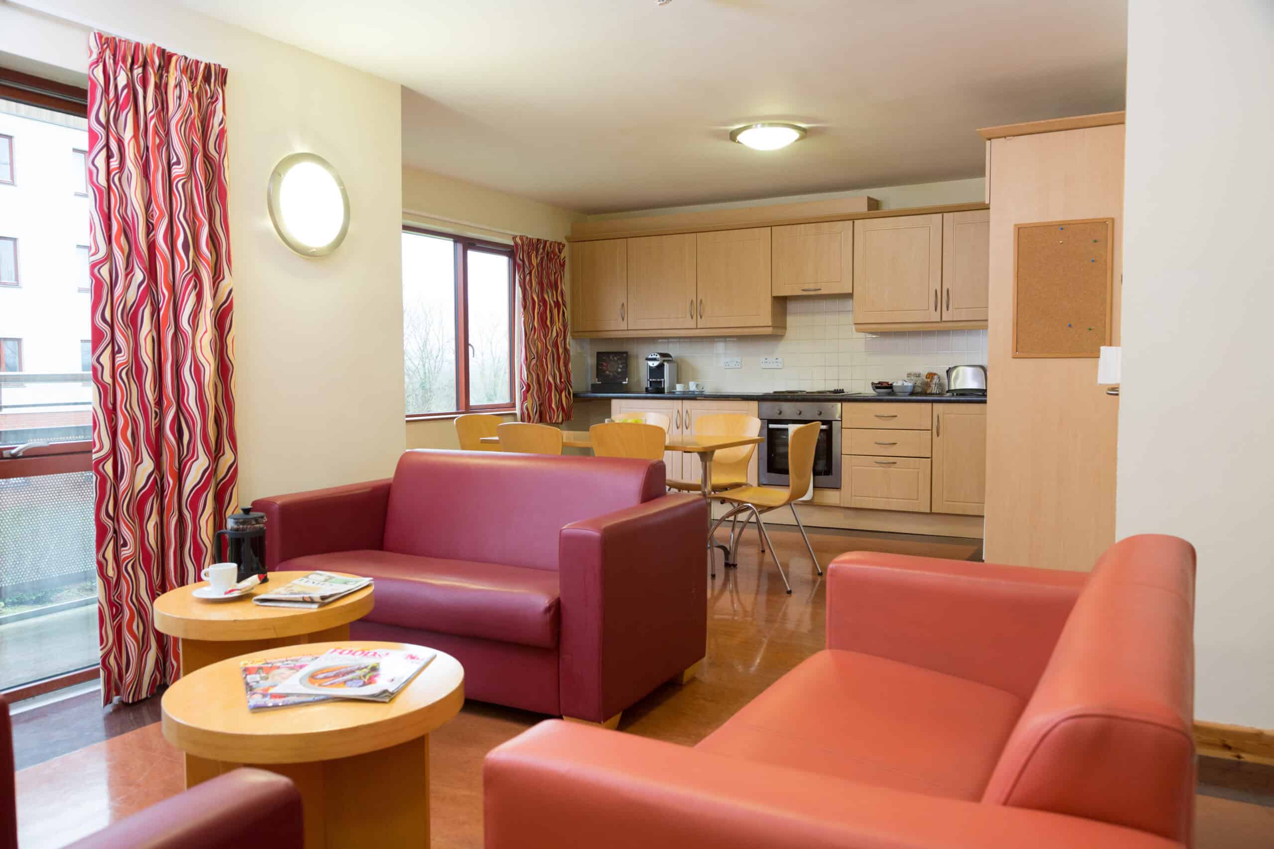 Why choose a campus apartment? Each bedroom has its own en suite bathroom, but there is also a shared comfortable living room and fully fitted kitchen for you to spend time with friends or family. Apartment stays include a continental breakfast plus two hot items every morning. Apartments are more economical vs. hotel cost in general. Campus apartments are close to on-campus restaurants, grocery shops and bars, and UWPIAA venues. Apartments are available anytime from July 17-27, but all units are reserved and must be paid for the entire booking. A single person arriving ahead of the rest of their group may book one night of a single booking and then move into a group apartment. How it works Final deadline to reserve an on-campus apartment is MARCH 6. This is a university deadline and there will be no extensions . The booking link and details are included in the Annual Alumni Week (AAW) registration confirmation email. You will need your AAW registration confirmation number to reserve a room or full apartment. For a group reserving an entire apartment, only ONE person will make the reservation and that person is responsible to pay IN FULL for the booking. Payment to the university cannot be split between everyone in the apartment. All rooms in a group apartment will be booked for the same length of stay. If the first person in the apartment arrives on Sunday, then all rooms in that apartment are booked and paid for starting on Sunday. Once you have selected the apartment size, you will be directed to a link to add a list of everyone staying in the apartment. Please complete this in full and upload it—you will not be able to proceed until this step is complete. If you are booking for a group but do not have enough people for ALL of the rooms in an apartment, you may still book and pay for ALL rooms, and then attempt to “sell” any unoccupied rooms to other alumni looking for a room. If you do not have a group to stay with, individuals or couples may request a single room, and you will be placed in an apartment with a room available. The university will try to place you with your year/era, but there are no guarantees. There are two villages: Dromroe and Cappavilla . Dromroe is closer to AAW activities on campus. See the campus map here . You are welcome to express a preference for a specific village when you book, but it is not guaranteed. Assignments will be shared with attendees approximately two weeks before the event, along with check-in procedures. Questions? Contact the university directly at UWPIAALimerick@ul.ie . The UWPIAA registration team is not involved in on-campus accommodations. Apartment amenities Check in is 16:00 – 20:00. Check out is by 10:00 sharp. Village receptions are able to store luggage if you arrive early. If you arrive after reception closes, there will be a sign with a phone number at reception to call security and access your apartment. Reception desk hours: Cappavilla: 8:00-22:00 / Dromroe: 8:00-23:00 Continental breakfast + 2 hot breakfast menu items will be available daily in your Village. Kitchens have crockery, utensils and cutlery, and are fully equipped with hob (stovetop), oven & grill, refrigerator & freezer. There is a multi-channel TV in the living area with comfortable seating. Linens and towels are provided. Additional towels are available for use during the week for a fee. Hair dryers are not provided. An ironing board is provided, and irons are available on loan at Village Reception. Payment & cancellation policy A non-refundable 50% deposit is required to secure your accommodation, at the initial booking stage. The remaining 50% must be paid in full by May 17, 2026, to confirm your reservation To complete your reservation, you will need to supply the names of all the guests who will be staying in your apartment. The 50% booking deposit is non-refundable once paid. Bookings paid in full can be cancelled by May 17, 2026, and a 50% refund will be given. Any cancellations after May 17, 2026, are non-refundable. Prices OPTION 1: UNIVERSITY GROUP ACCOMMODATION, 6-BEDROOM Private 6-Bedroom Ensuite Apartment — booking deadline is March 6
