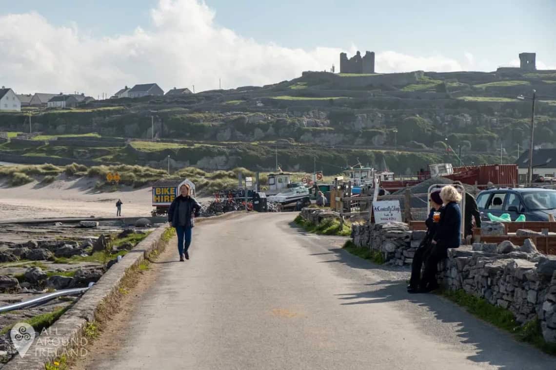 The main village area is right next to the beach and is enclosed by a hill with a castle and a fort at the top. There is a lighthouse and a shipwreck to be explored, and you will find a strong local community still adhering to the traditional way of Irish life. You will have plenty of time to explore the island by foot, or rent a bike! If you are brave enough for the cool Atlantic ocean—go for a quick swim, check out the island birds, and you might catch a glimpse of the dolphins!