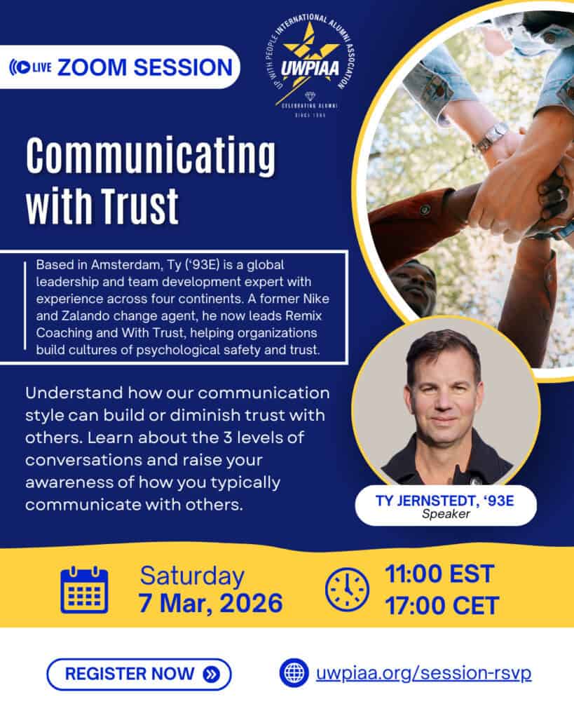 How we communicate with others greatly impacts how others trust us. Join our “Communicating with Trust” webinar led by Ty Jernstedt (’93E) and member of the UWPIAA Professional Development Team.
